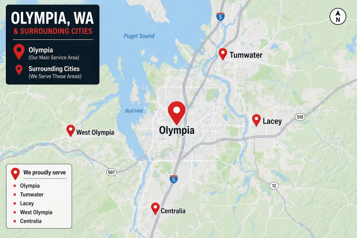 We serve Olympia and surrounding areas, depending on the project. If you have a flooring project nearby, reach out and we can discuss the location and scope of work.